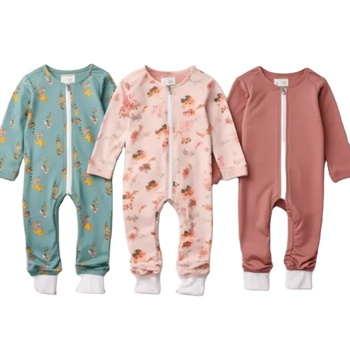 ชุดนอนสำหรับเด็กทารกชุดวันซี่แขนยาวผ้าวาฟเฟิลนุ่มระบายอากาศได้ดีมีซิป