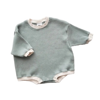 ชุดรอมเปอร์วาฟเฟิลสำหรับเด็กทารกแรกเกิดเสื้อบูติกคอกลมแขนยาวทรงหลวมออกแบบได้ตามต้องการ