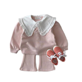 Loi Bear estilo coreano Casual ropa para niños primavera otoño niñas Sudadera con cuello pantalones acampanados traje de dos piezas de moda