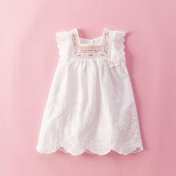 Niñas verano blanco princesa bebé elegante niños única moda versión coreana encaje hueco bordado dulce hasta la rodilla