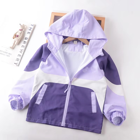 2025 otoño nuevo cárdigan mediano grande con cremallera chaqueta con capucha Color a juego rompevientos para niñas al por mayor